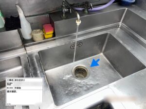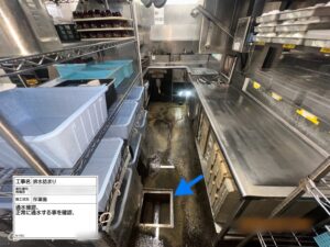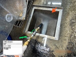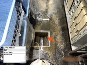 一般家庭の場合はポンプ等を使用して解決する場合もありますが、飲食店の場合は一般家庭よりも使用する回数も量も違いますので高圧洗浄の方がいいと判断しました!!